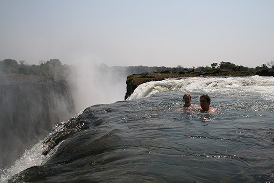 位于非洲東南部的維多利亞瀑布是世界上最大的瀑布,它有尼亞加拉大瀑布的兩倍高。盡管它的高度令人畏懼,但勇敢的人卻在瀑布頂端發(fā)現(xiàn)了一個天然泳池。在一年中的9月到12月是泳池水位最低的時候,游泳愛好者進(jìn)入到魔鬼泳池水流最緩慢的區(qū)域盡情享受泉水的涼爽,瀑布從那里傾瀉到355英尺下的大峽谷中,可謂是驚險刺激。